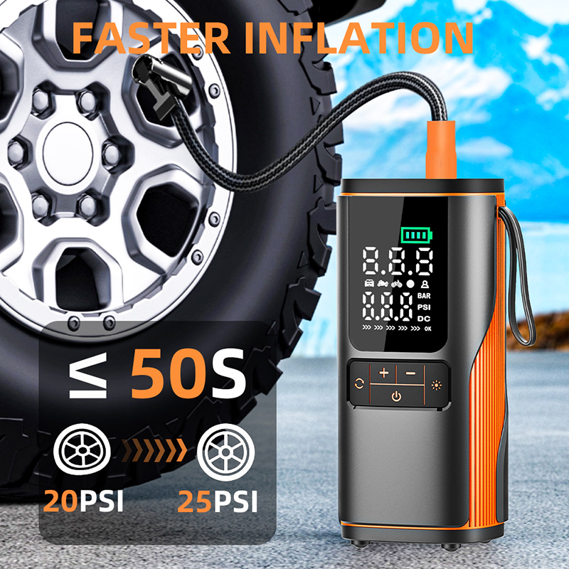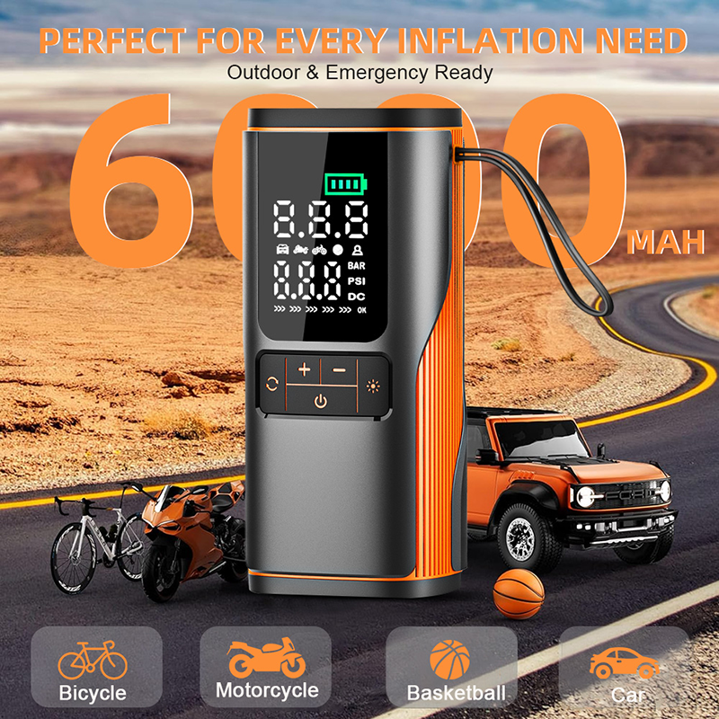 Equipped with accurate tire pressure detection. It offers preset modes and automatic stop when pressure is reached. This prevents over‑inflation and protects your tires.