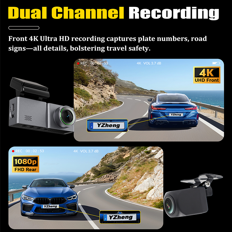 Dual-Channel Recording (Front 4K + Rear 1080P):2K+20K 30fps