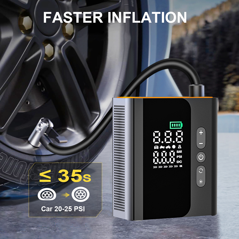 Equipped with tire pressure detection for accurate readings. It offers preset modes and auto‑stop when target pressure is met. This prevents over‑inflation and saves time.
